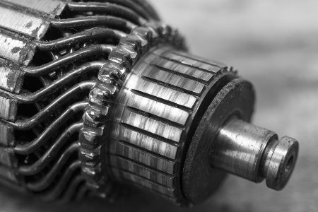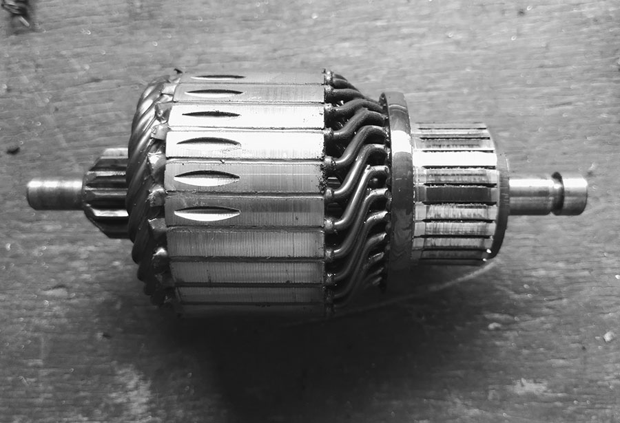 Der Kollektor sammelt den Strom von den Bürsten ein und leitet ihn an die Spulen auf dem Rotor weiter.