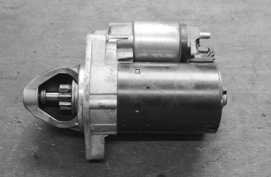 Wir zerlegen hier einen 15 Jahre alten Bosch-Starter mit Glocke. Frei ausstechende Geräte oder Starter von Valeo, Marelli, Alanko und Co. sind teilweise anders aufgebaut, funktionieren jedoch genauso.