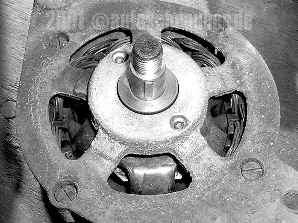 An einem hier exemplarisch gezeigten Klauenpolgenerator, Fabrikat „Bosch Karo-einfach“ kann außer den beiden Rillenkugellagern und den Schleifkohlen nebst Regler nicht viel kaputtgehen. Wenn das Teil also klappert oder keine Leistung mehr abgibt, kann man an eine Überholung denken.