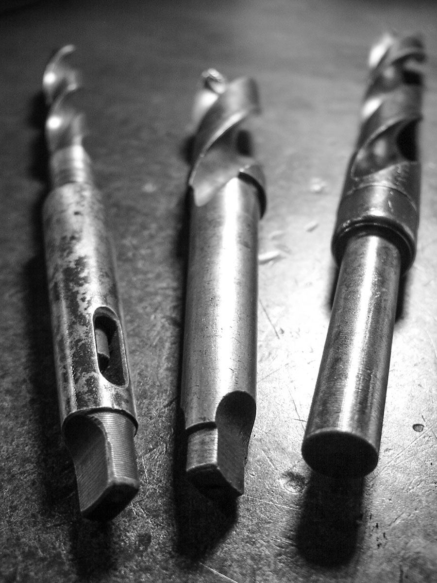 Hatten wir in der vergangenen Folge den Bohrständer als Mittelchen, um mit einer gemeinen Handbohrmaschine eine Tisch- oder Säulenbohrmaschine zu emulieren, so stößt dieses Bohren im Bohrständer irgendwann auf eine Grenze – und diese Grenze ist schlicht der Durchmesser des Werkzeugs. Bohrer mit über 10mm Durchmesser haben nämlich keinen gewohnten Zylinderschaft mehr, sondern werden über so genannte Morsekegel in der Bohrspindel gehalten.