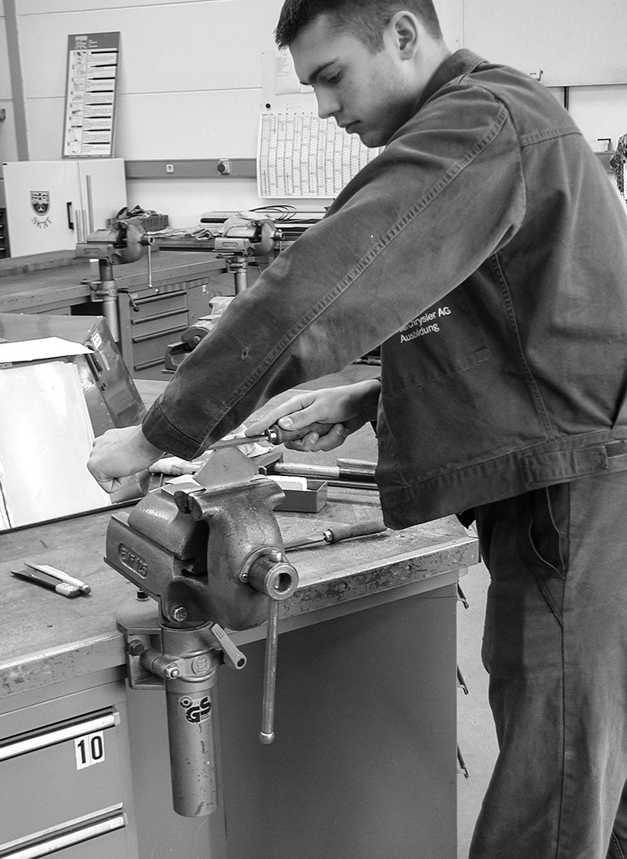 Außenradien und ihre Herstellung bilden den letzten Teil des Feil-Grundkurses. Man trifft solche Radien überall, so dass es nicht schaden kann, sie auch selbst produzieren zu können. In der Werkstatt-Praxis finden sie sich z.B. an Rohren, auf die man etwas aufgeschweißt hat. Das ließe sich auch mit einem Winkelschleifer in Form bringen, allerdings kann man mit diesem Gerät eigentlich nur Flächen schleifen.