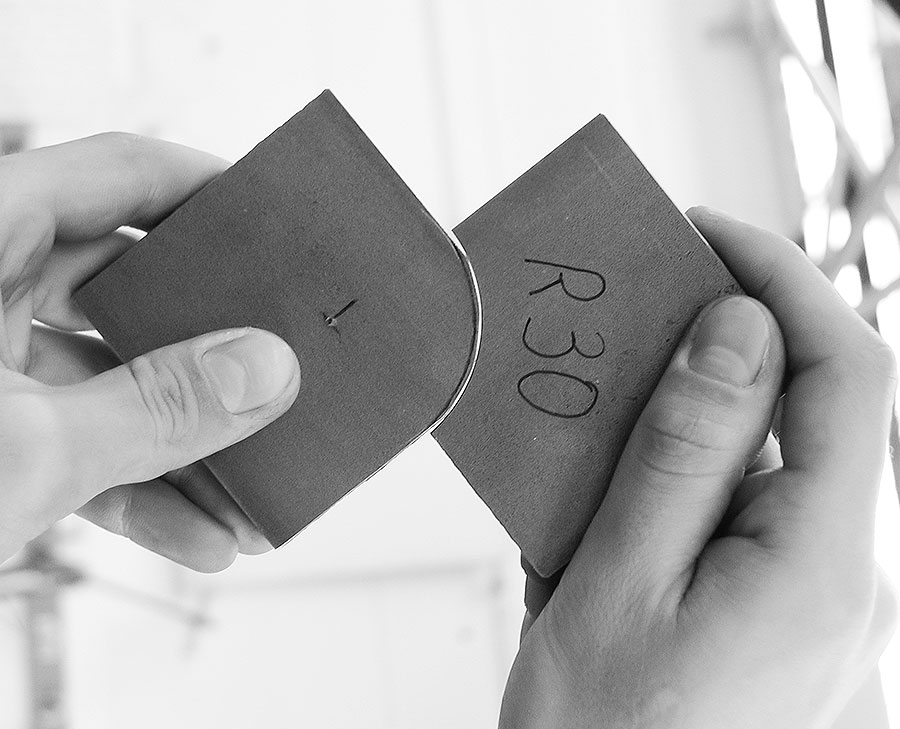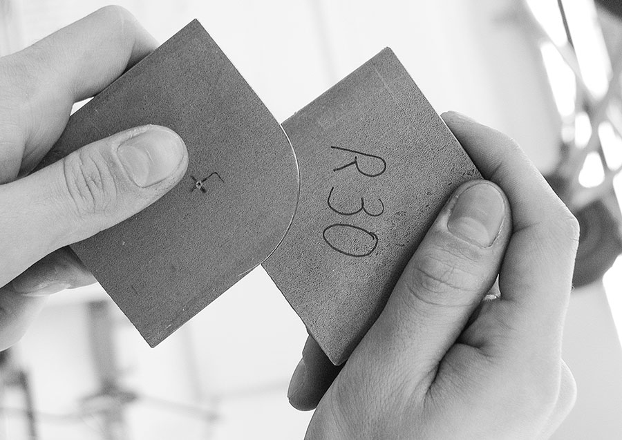 Wenn man das ein wenig geübt hat, geht dieses Gewippel und Gekippel einfacher von der Hand als ein sauberer Strich geradeaus. Unterdessen sollte man zwischendurch das Arbeitsergebnis immer wieder kontrollieren. Man neigt dazu, den Radius zu flach zu feilen – er läuft dann zu weit in die Fläche hinein. Eine ständige Kontrolle mit der Schablone oder eine Radienlehre hilft.