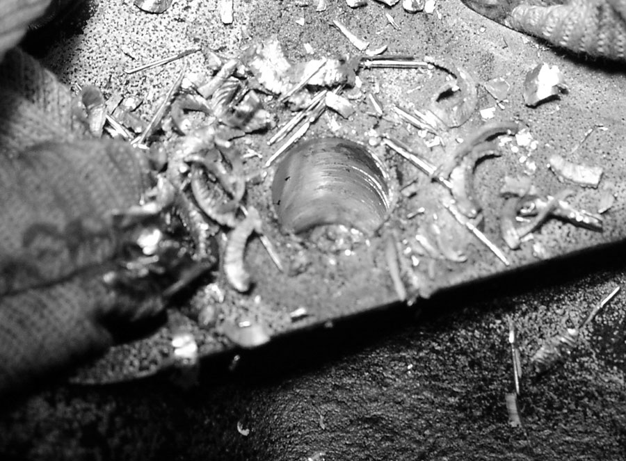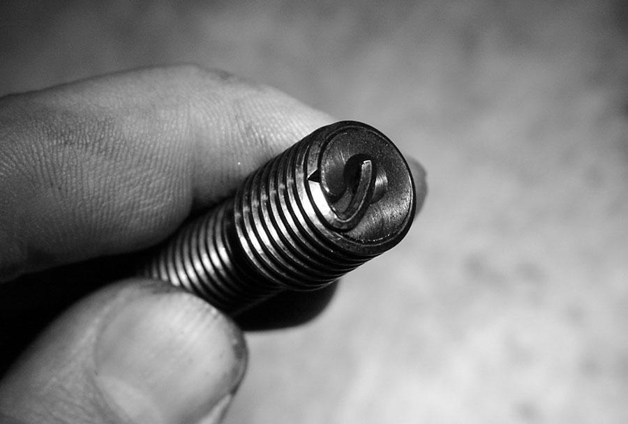 Bevor man anschließend mit Elan und russischer Urkraft alte Schrauben in das neue Gewinde dreht, muss noch der Mitnehmerzapfen der Wendel abgeknackt werden.