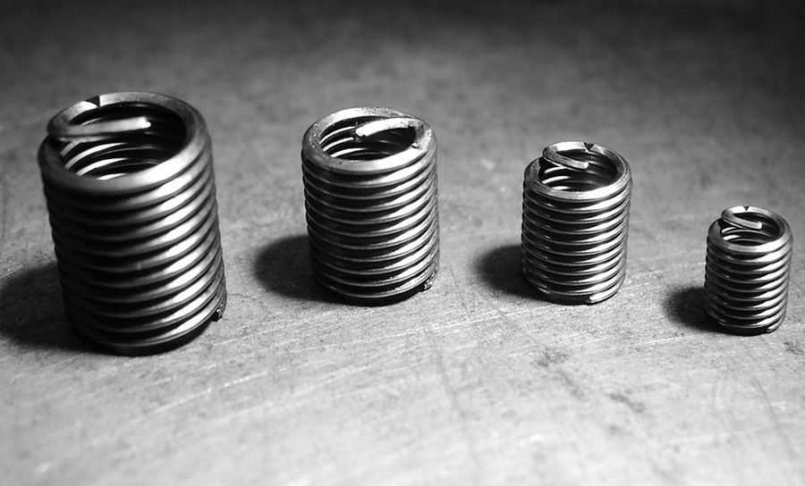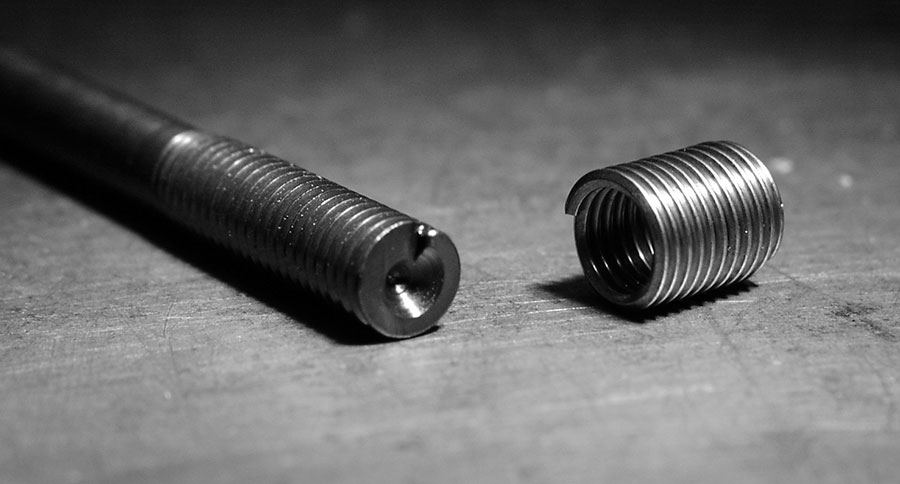 Hier kommt die Wunderarznei Helicoil zum Einsatz. Und das Prinzip der Wunder-Wendel ist frappierend einfach: ein vierkantiger Draht wird in die Bohrung gedreht und tut dann so, als ob er das Außengewinde ist. Basta. Diese Gewinderettung in Wendelform existiert für fast jeden Gewindedurchmesser und in unterschiedlichen Längen.