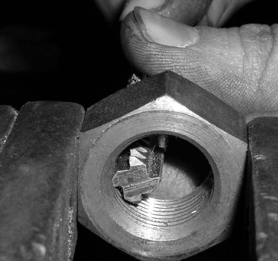 Weil ein kompletter Satz Schneideisen das Handschuhfach ausfüllt, hat man den passenden Gewindebohrer nebst Windeisen nur selten dabei, wenn man hat man mit Karacho durch die tibetische Tiefebene, das Hoggar-Hochland oder die mecklenburgische Provinz brettert.