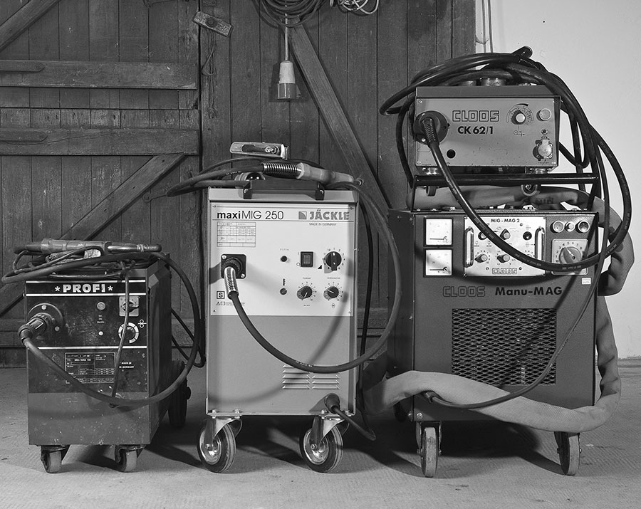 Lässt man seine trüben Augen in einer Metall- oder Autowerkstatt schweifen, bleibt man irgendwo an einer Kiste hängen, an der hinten eine Gasflasche dranklebt. Das ganze Teil steht auf Rollen und verfügt über ein paar Schalter, Knöpfe und zwei Strippen, die malerisch über dem Manometer der Flasche hängen. Man erblickt den Stolz einer jeden Werkstatt: Das Schutzgasschweißgerät.
