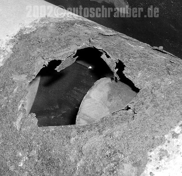 Das Geröhre (Achtung: Teekesselchen!) ist draussen und das zugehörige Automobil noch existent? Dann lohnt sich ein Blick auf den Topf. Falls ausser einer perforierten Hülle auch massive Korrosion im Inneren vorherrscht, bleibt nur, das Teil in hohem Bogen auf den Schrott zu werfen und zum Neukauf zu schreiten (ob dem eines Auspuffs oder eines Autos bleibt der individuellen Wirtschaftlichkeitsrechnung vorbehalten).