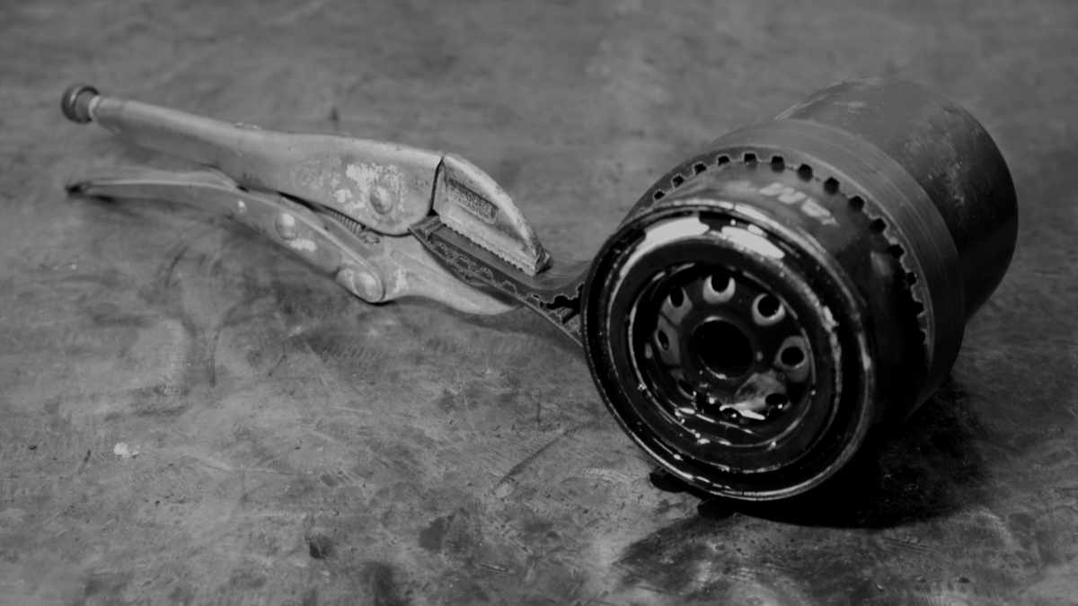 Schmierenkomödie beim Wechsel der Ölfilterpatrone? Eine Gripzange und ein halber Meter Zahnriemen können helfen.