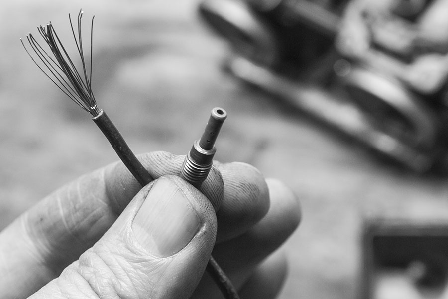 Prima geht ein Seelendraht Kupferlitze – die lässt sich im ärgsten Notfall sogar aus der Maschine selbst entnehmen und putzt zwar nicht brutal, aber doch sauber und lässt sich Einstellung des Vergaser intakt.