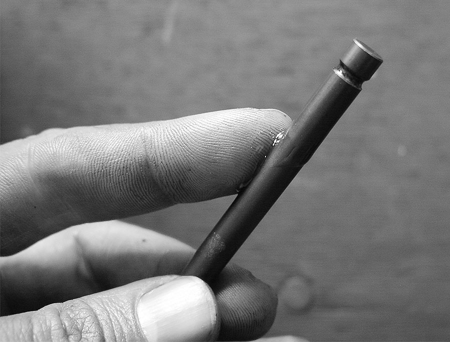 Wenn man das Ventil jetzt hin- und herdreht, spürt man deutlich das Geknirsel der einzelnen Schleifkörner. Alle paar Umdrehungen das Ventil abheben und „in der Luft“ ein bisschen weiterdrehen, damit man nicht immer auf derselben Stelle schleift.