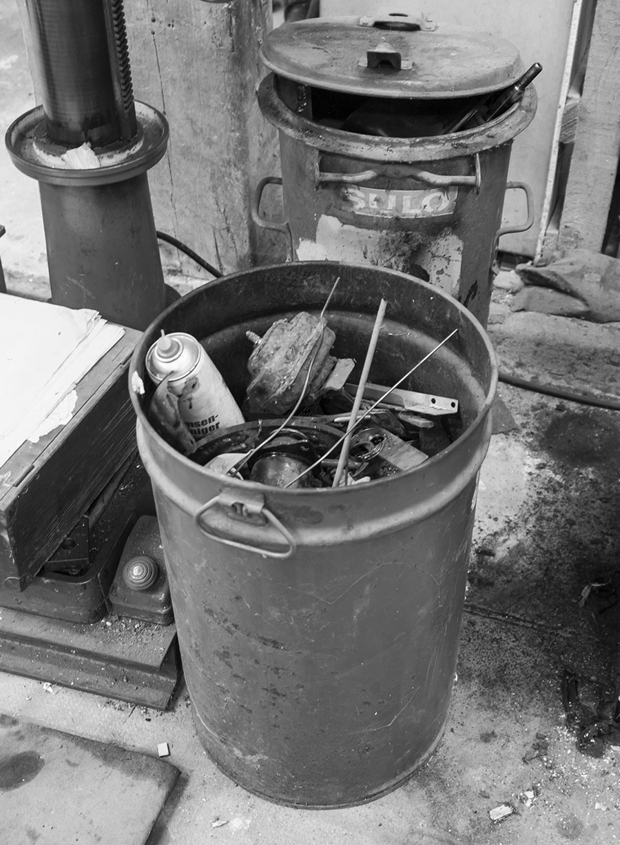 Wer Platz, Geduld für die Kleinanzeigen-Stöberei und etwas Geld hat, kauft deswegen Schränke. Nebenher kann man da mit kleinen Magneten auch die ausgedruckten Sprengzeichnungen der Werkbank dranbappen oder auch dekorative, historische Bierreklame aufhängen. Wer zwischen Schubladen-Schrank und normalem Schrank-Schrank entscheiden kann, entscheide sich im Zweifel nicht zu früh für den Schubladen-Kollegen.