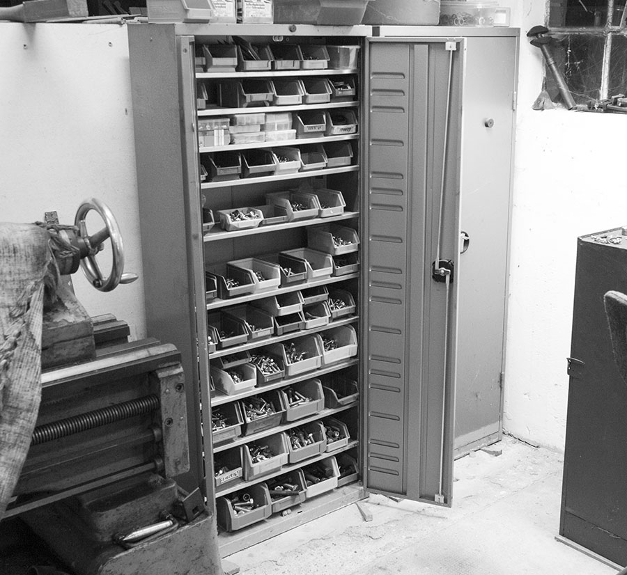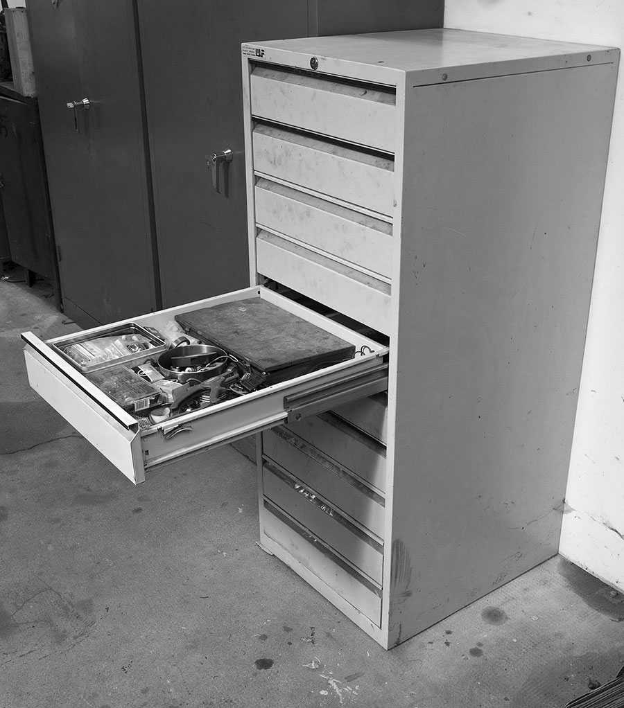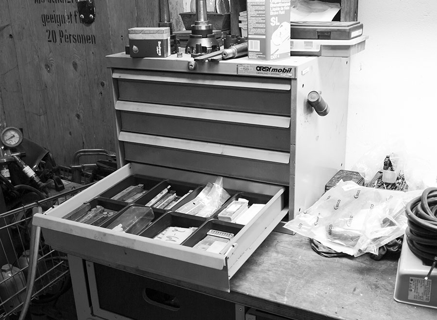 Bügelmesschrauben, Innentaster, elektrische Messgeräte oder die fein säuberlich in ölige Lappen gewickelten Verstell-Reibahlen. Alles, was weder Staub noch Erschütterungen verträgt, gehört in den Schrank.