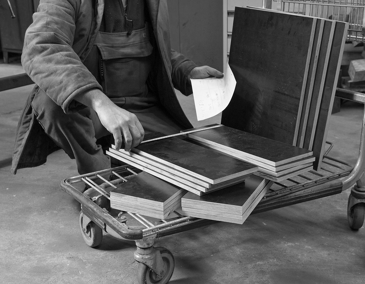 Bei den Schubladen ist vor allem Präzision wichtig – jeder Kasten muss seine Maße einzeln hergeben, da bereits kleine Spalte von 1-2 mm zwischen den Seitenwänden einfach unschön aussehen. Die Maße für die Wände hingegen hängen logischerweise von ihrer Dicke und der Anordnung ab; der Einfachheit und Stabilität halber bestehen sie bei diesem Exemplar aus 10 mm starken Filmplatten. Der Boden der Schubladen liegt dabei tatsächlich auch am Boden und die Front- und Rückseiten schließen die Seitenwände ein. Abgesehen davon, dass die Schubladen auch aus mit Tiermotiven bedrucktem Esspapier bestehen könnten, ist diese Anordnung der Platten mit Abstand am stabilsten. Der Boden verträgt dann nämlich die Zuladung von einem Doppelzentner Hackblei, während auch Arnold und Sylvester das Ding im Akkord auf- und zuschieben können, ohne dass das Material leidet.