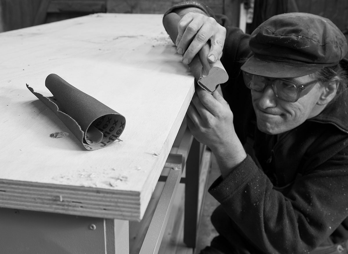 Passt nicht? Korrigieren: Ohne Kantenschleifer geht das am besten mit einem Bogen Schleifleinen auf einem geraden Brett. Auf diese Weise lassen sich nicht nur ein paar Millimeter herausholen, sondern auch die Kanten leicht anfasen, damit die Platten saugend in die Ecken der Profile passen.