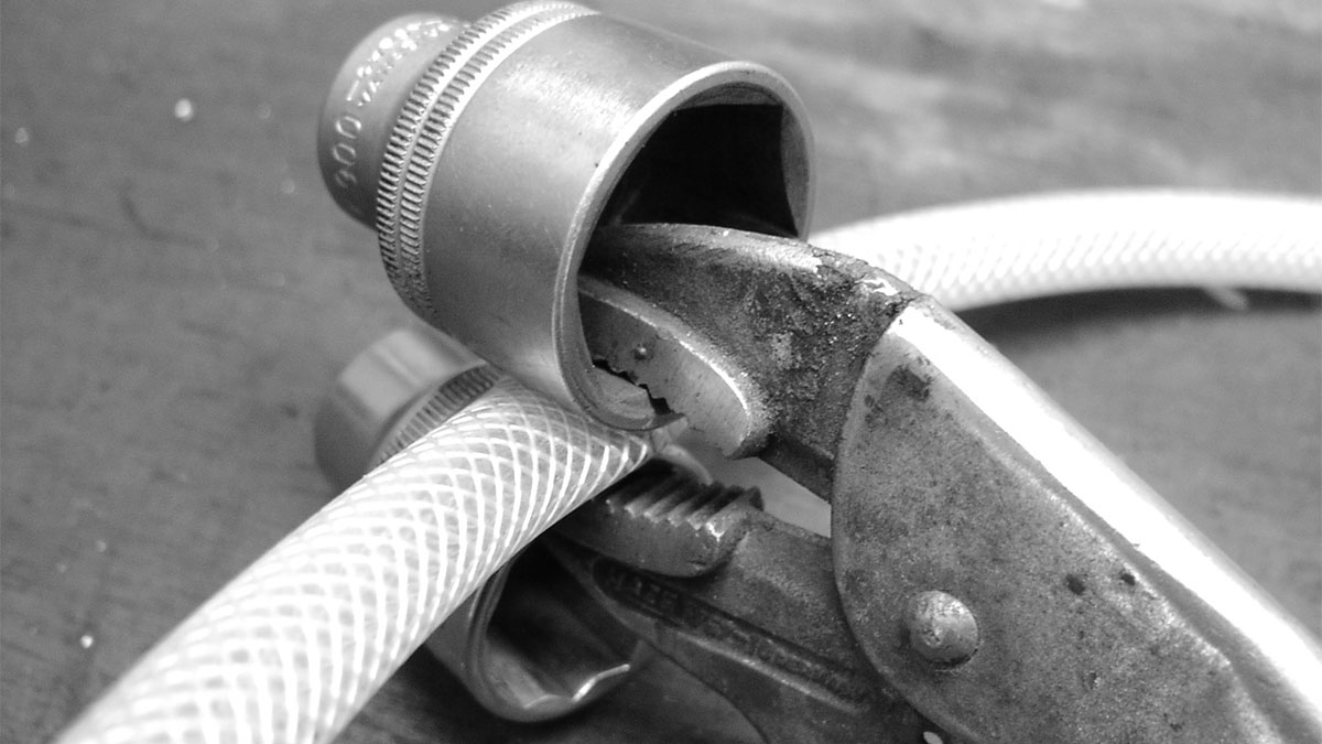 Um Schläuche schonend abzuklemmen, eignen sich Grip-Zangen - mit beigelegten Steckschlüssel-Nüssen.